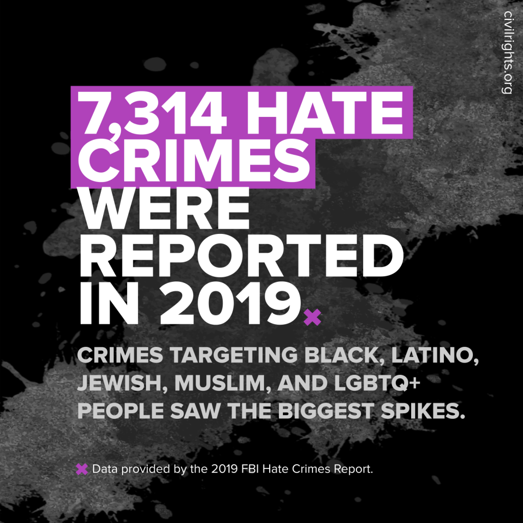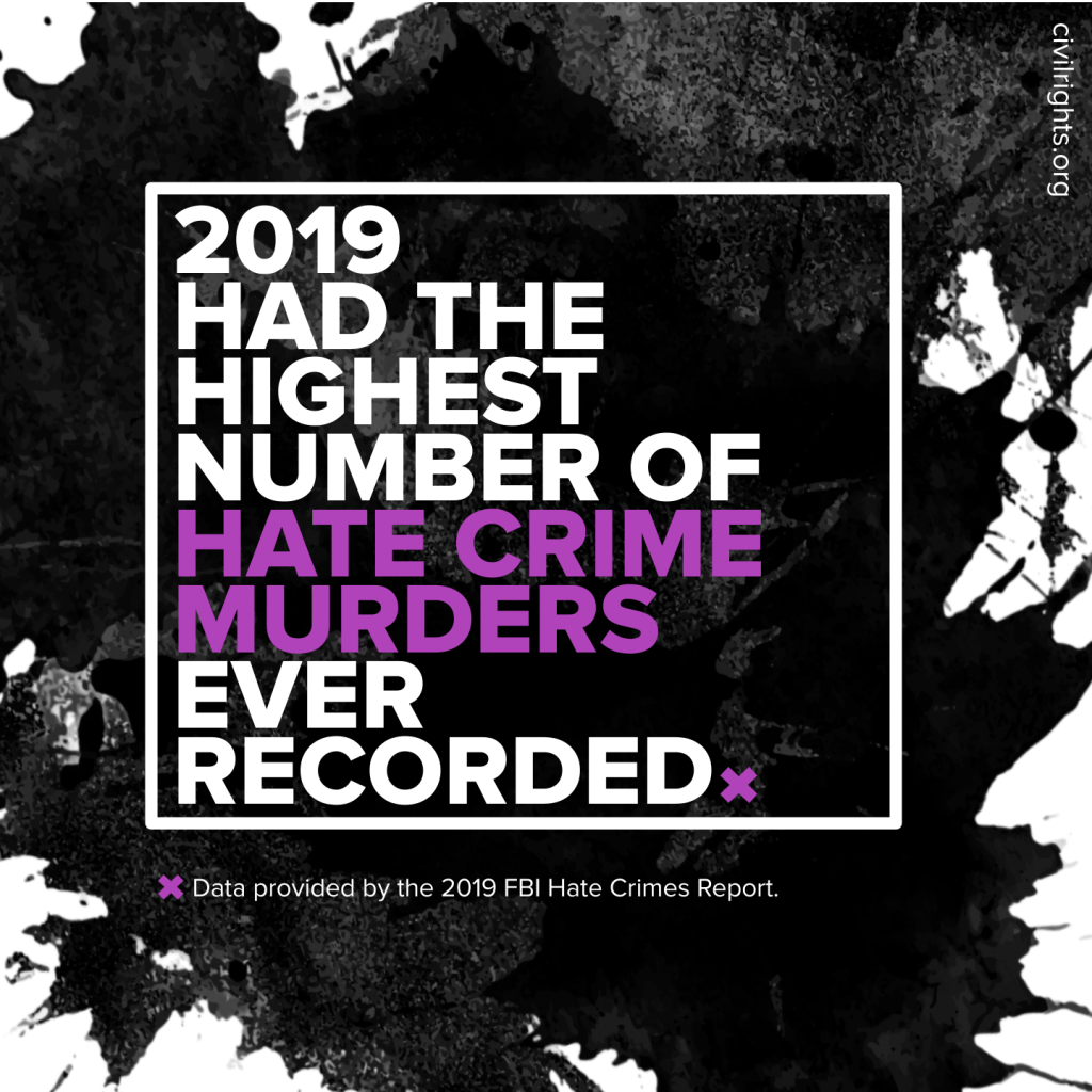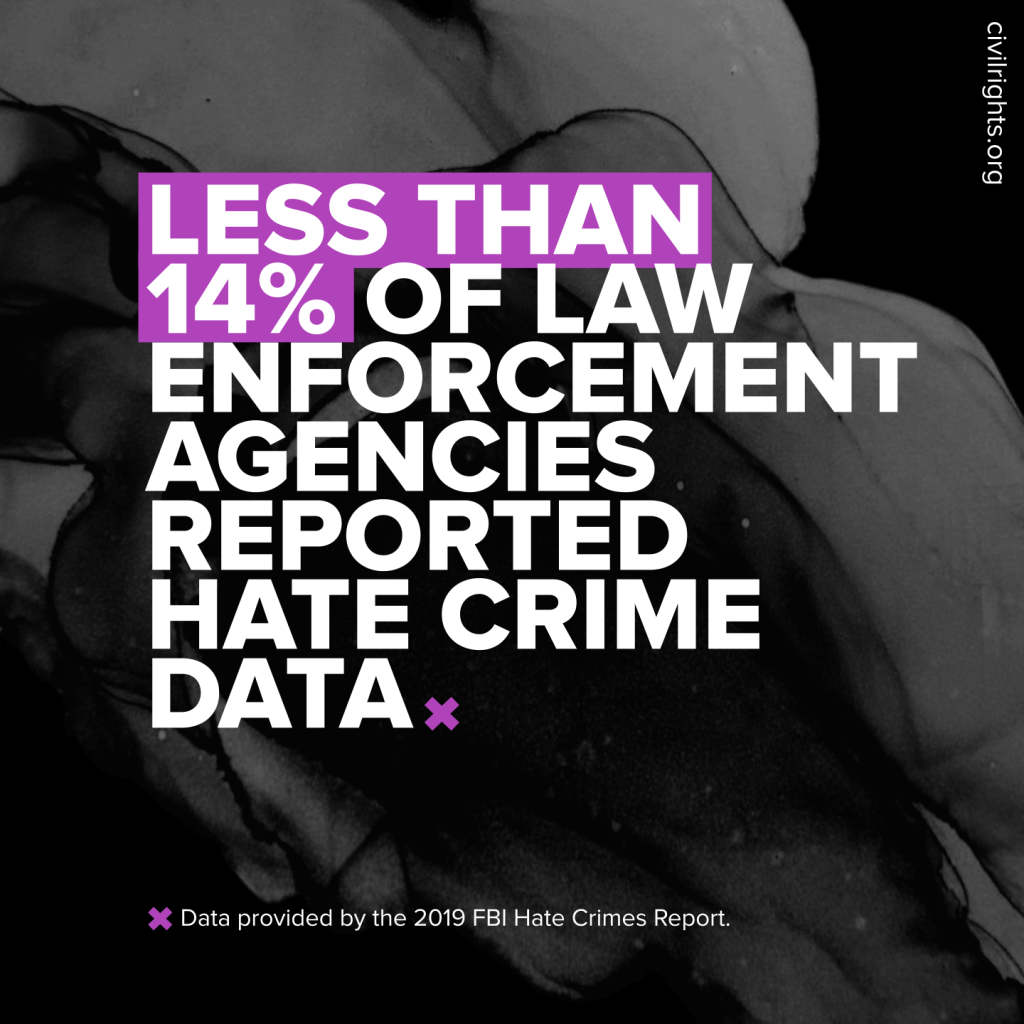 Data indicates that hate crime has been steadily on the rise. But the data understates the experiences of communities impacted directly by hate. Nearly 90 percent of the nation’s law enforcement agencies do not submit hate crimes to the FBI – and we know that there is a historic distrust between many communities and law enforcement, resulting in under-reporting. That means our understanding of the magnitude and nature of the crisis is dangerously limited — even as the crisis worsens.