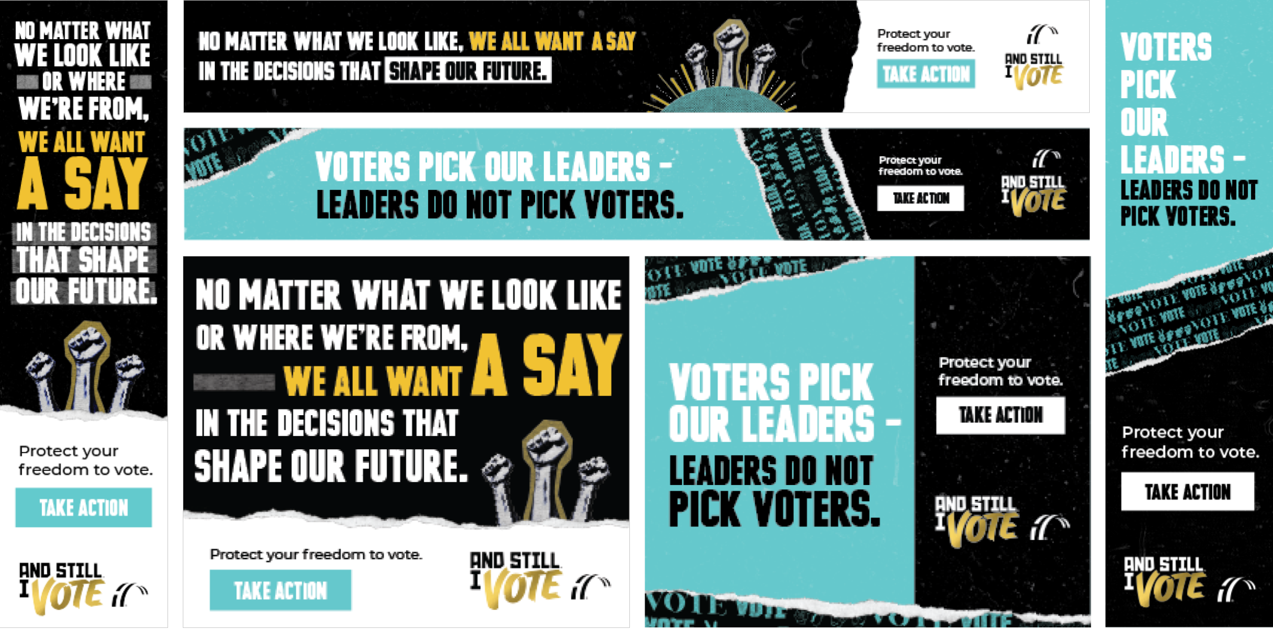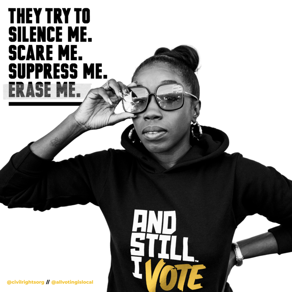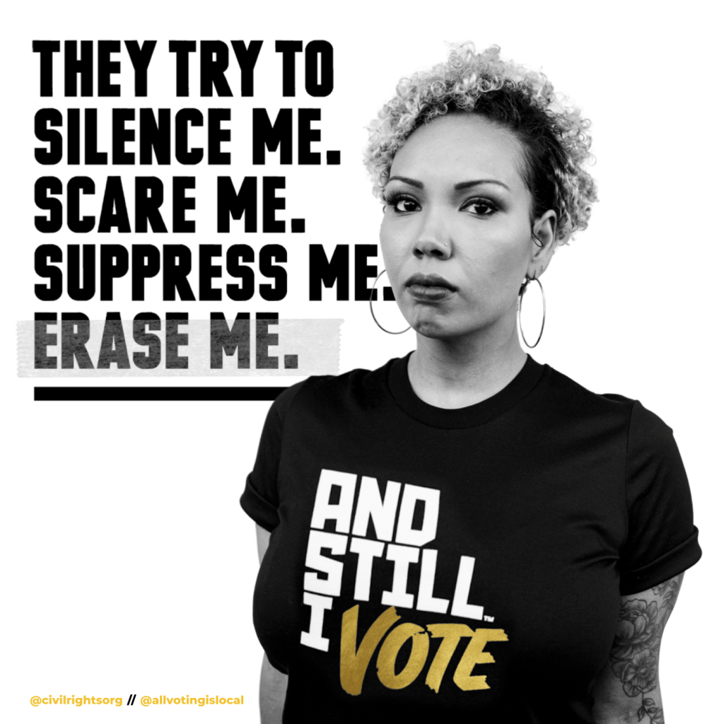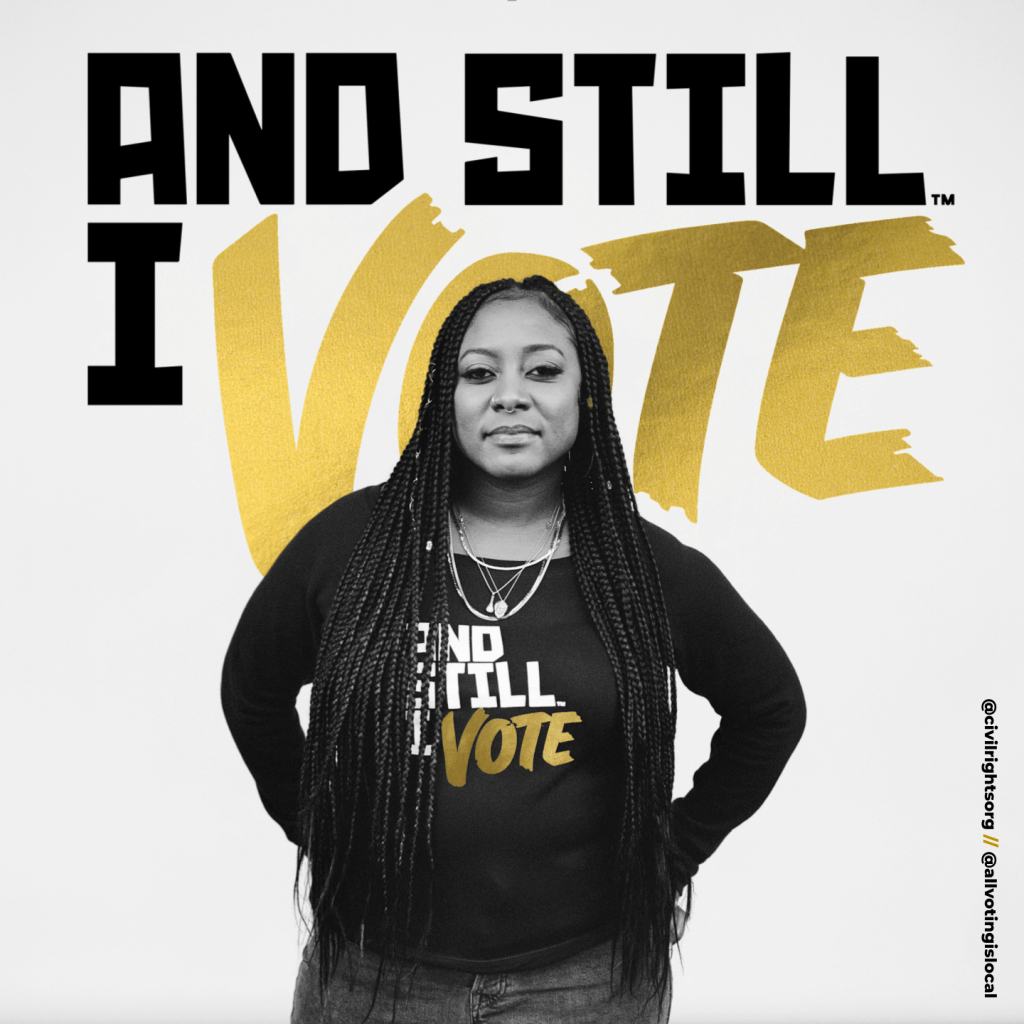 And Still I Vote is a campaign to help the next generation of voting rights activists show up for their communities, reclaim their power, and realize the full promise of our democracy – the inheritance passed down to them by the activists who marched before us. We used artful visuals to highlight the possibilities that voting brings, while also addressing the challenges posed by hundreds of restrictive voting bills introduced across the country.