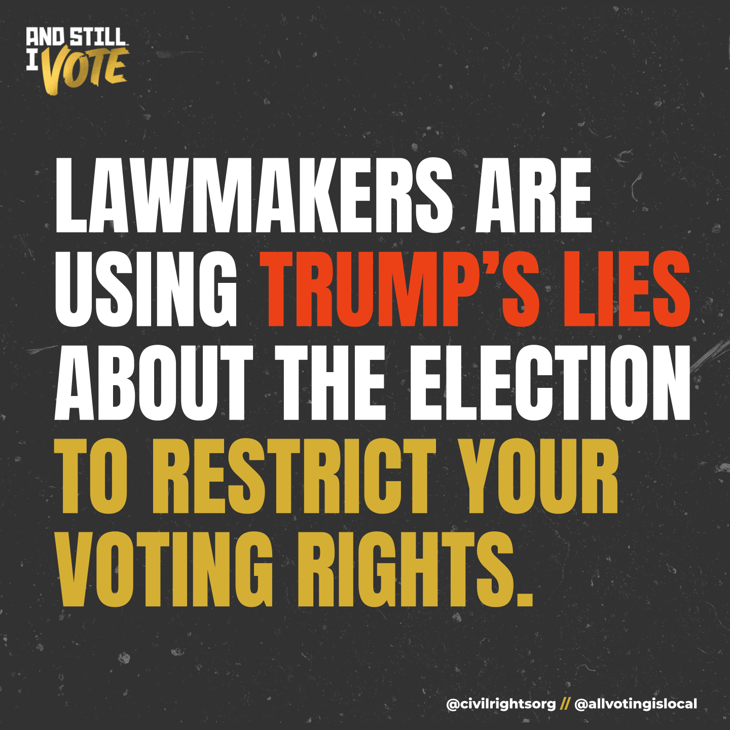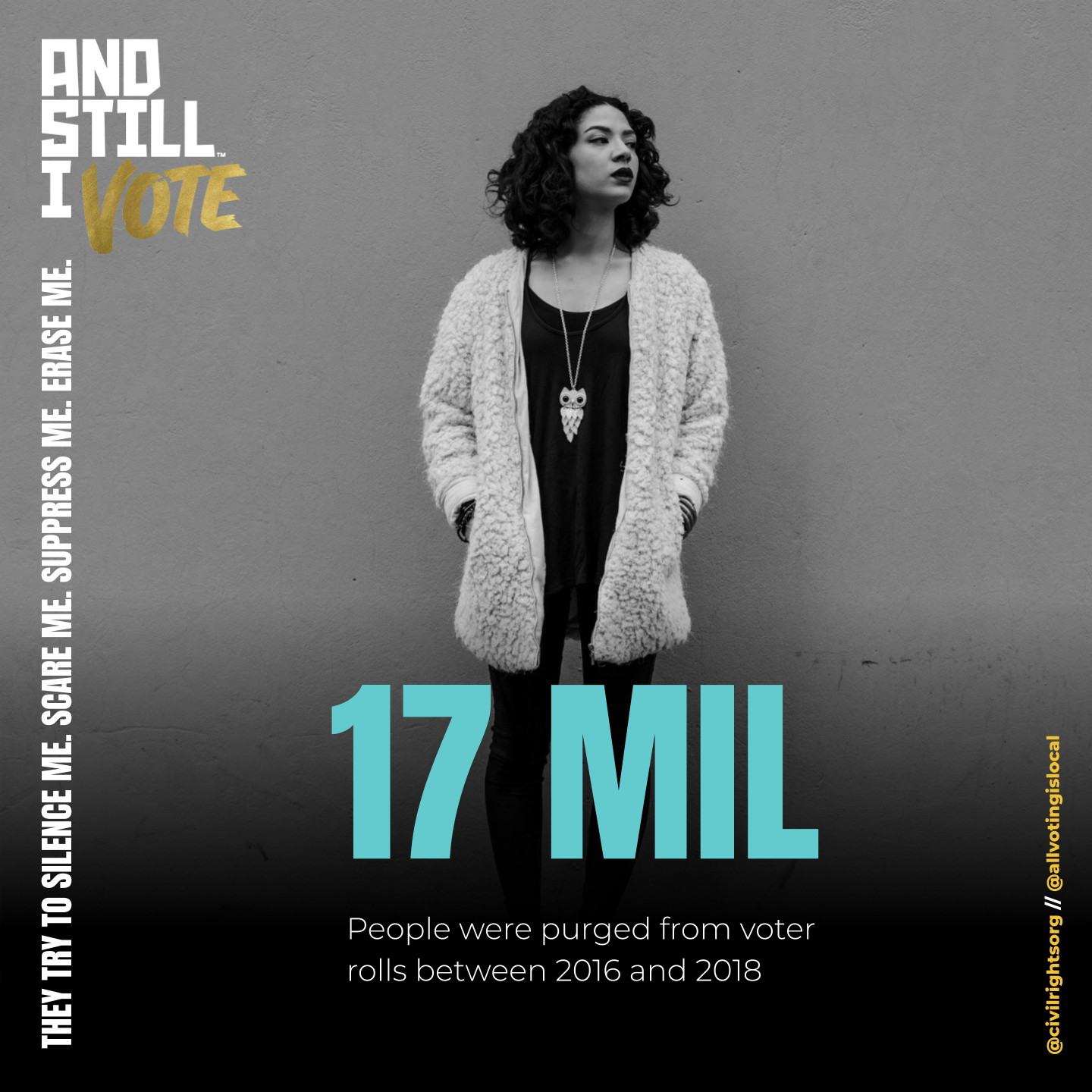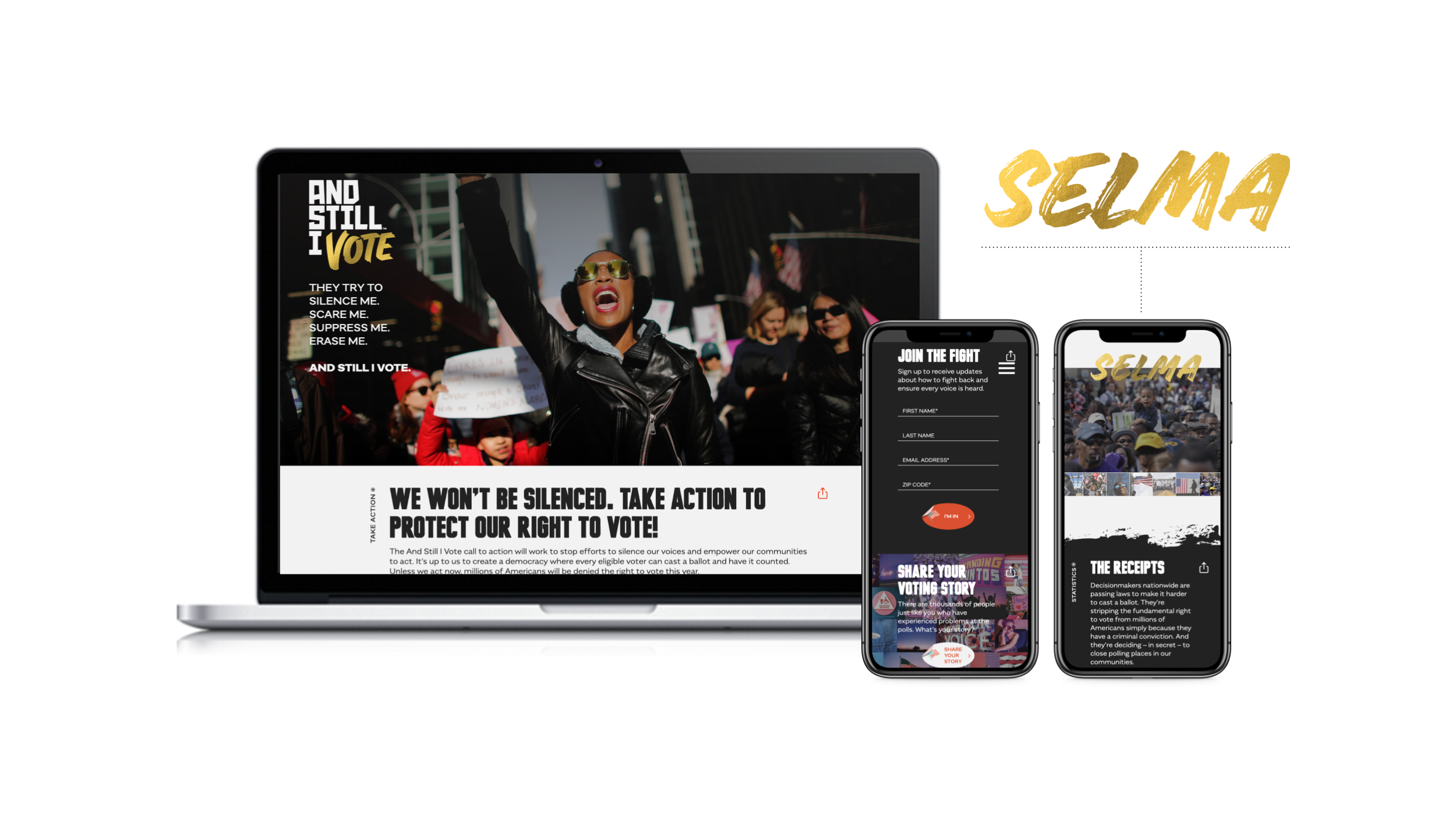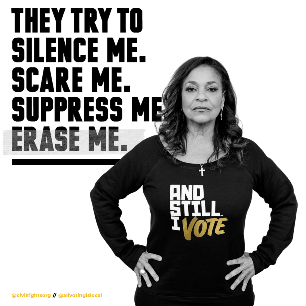 And Still I Vote is a campaign to help the next generation of voting rights activists show up for their communities, reclaim their power, and realize the full promise of our democracy – the inheritance passed down to them by the activists who marched before us. We used artful visuals to highlight the possibilities that voting brings, while also addressing the challenges posed by hundreds of restrictive voting bills introduced across the country.